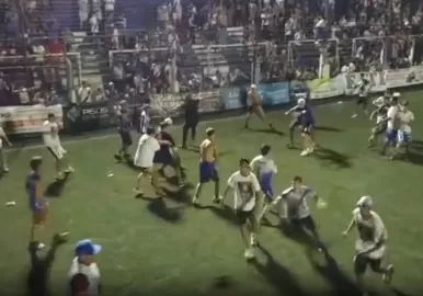 El hecho ocurrió el pasado sábado luego de que el club logró el ascenso a Primera B tras derrotar a Liniers. Un violento del club de Merlo es buscado por la Justicia.