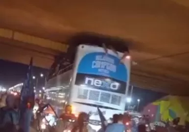 El chofer del ómnibus descapotable que llevaba el plantel que logró el ascenso a Primera no contempló a los futbolistas cuando pasó debajo de un puente. La reacción de los hinchas.