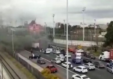 Un grupo de fanáticos del Xeneize se juntó en la icónica avenida para cargar a sus máximos rivales. Hubo banderas y cortaron el tránsito.