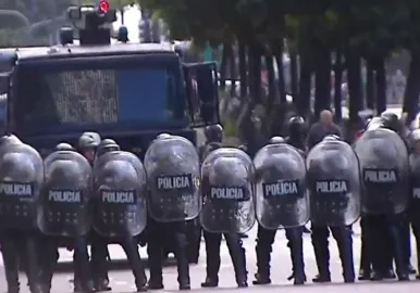 Al mediodía, los efectivos comenzaron a despejar la zona y se registraron incidentes con algunos manifestantes que respondieron con piedrazos. Actuó un carro hidrante, hubo disparos y algunos detenidos.