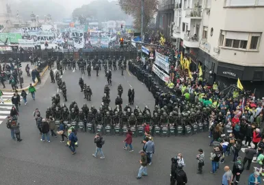 Efectivos de la policía federal y de la Prefectura pusieron en marcha el protocolo antipiquetes contra los militantes que marchaban en contra del proyecto de ley.