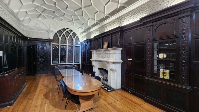 Es de estilo neo Tudor y se caracteriza por abundantes entramados de madera y por la fusión de elementos renacentistas y neogóticos. También esconde un pequeño patio andaluz.