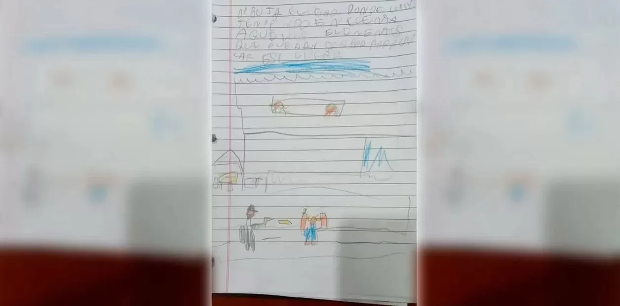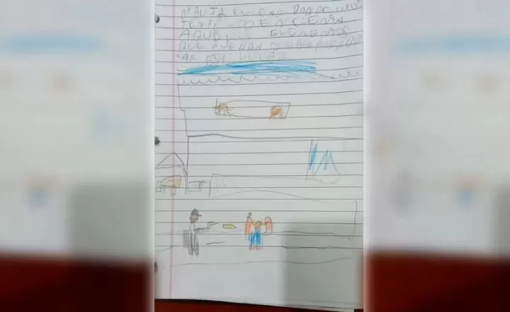 La situación se dio en el marco de una actividad que trataba de dibujar el lugar donde vivía el estudiante teniendo en cuenta aquellos elementos que puedan servir para ubicarlo. Entonces, el nene agarró sus lápices de colores y comenzó a ilustrar una escena que resultó escalofriante.