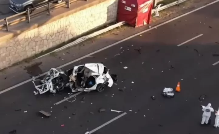El incidente ocurrió cerca de las 5 de la mañana por motivos que se investigan. Tras chocar contra el muro divisor izquierdo, el Ford Focus siguió su carrera y término impactando contra el muro de la rampa de tránsito pesado.
