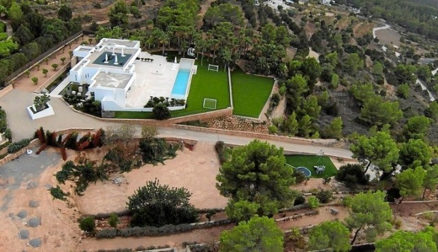 En un terreno de 16.000 m² ubicado en Cala Tarida, al oeste de la isla, está construida la mansión de 568 m² que le brinda privacidad al futbolista para disfrutar de su tiempo libre con su familia.