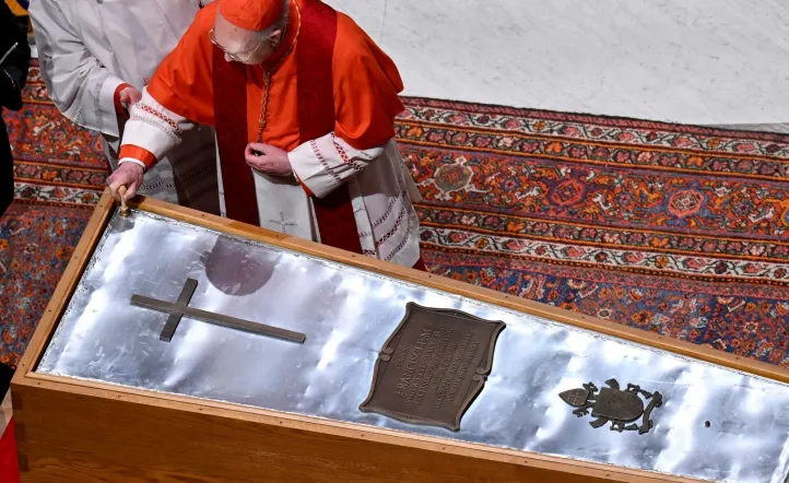 El féretro con los restos del Papa Francisco fue cerrado en una ceremonia privada que comenzó a las ocho de la noche en Roma -cinco horas menos en Argentina-, presidida por el cardenal camarlengo Kevin Farrell, frente al altar mayor de la basílica de San Pedro.