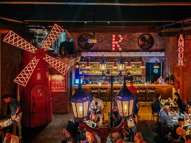 La ambientación del lugar está basada en el "Moulin Rouge", el histórico cabaret parisino que inspiró películas y musicales. De hecho, cuenta con un molino rojo que es, a la vez, una cava de vinos a la que se puede acceder.