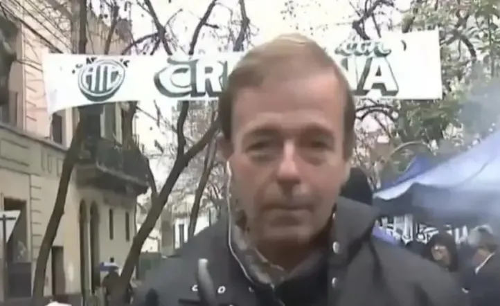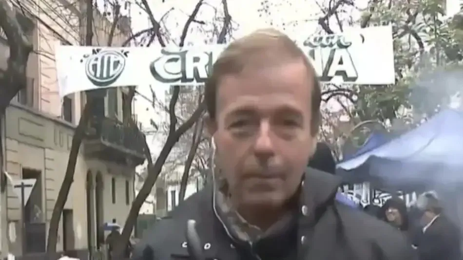 El movilero Fabián Rubino se encontraba transmitiendo en vivo cuando describió el ambiente en el lugar, mencionando que había “gazebos con parrillas” y calificando la escena como el “show del choripán y de la bondiolita”. Sus palabras generaron una inmediata reacción entre los presentes, que comenzaron a increparlo.