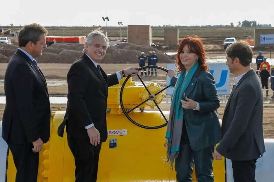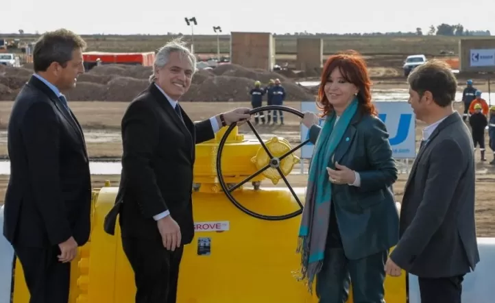 El presidente Alberto Fernández inauguró el Gasoducto Néstor Kirchner en el distrito bonaerense de Salliqueló y en el acto se mostró acompañado por la vicepresidenta, Cristina Kirchner, y el ministro de Economía y precandidato presidencial de Unión por la Patria, Sergio Massa.