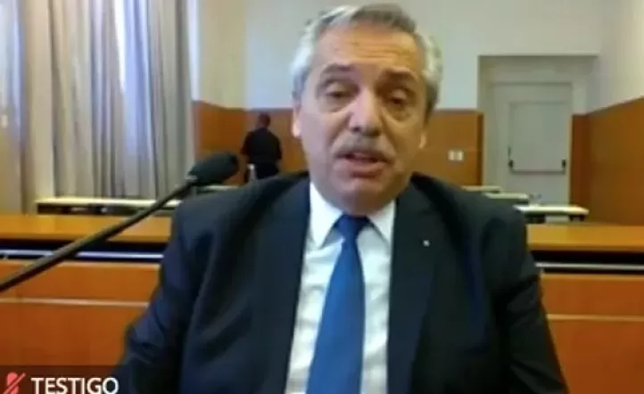 Alberto Fernández declara ante el Tribunal Oral Federal Número 2 en un debate que se realiza de manera semipresencial, con los jueces, testigos y un secretario en la sala y las restantes partes conectadas a través de la plataforma Zoom por la pandemia.