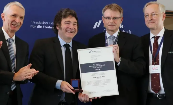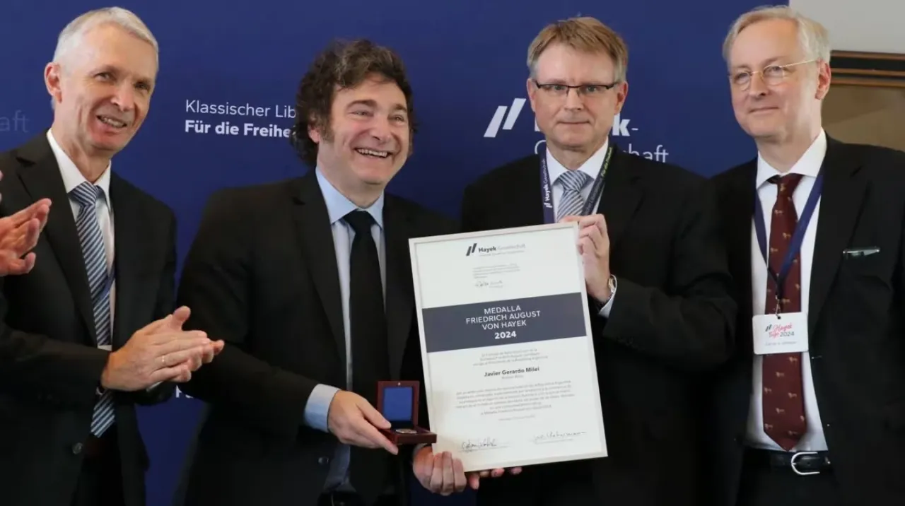 El mandatario argentino fue premiado con una medalla de la Sociedad Hayek por ”liberar de grilletes” a la población y devolverle “la esperanza”.