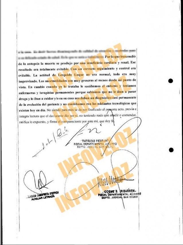 “La actitud de Leopoldo Luque no era normal, todo era muy improvisado”. sentenció el doctor.