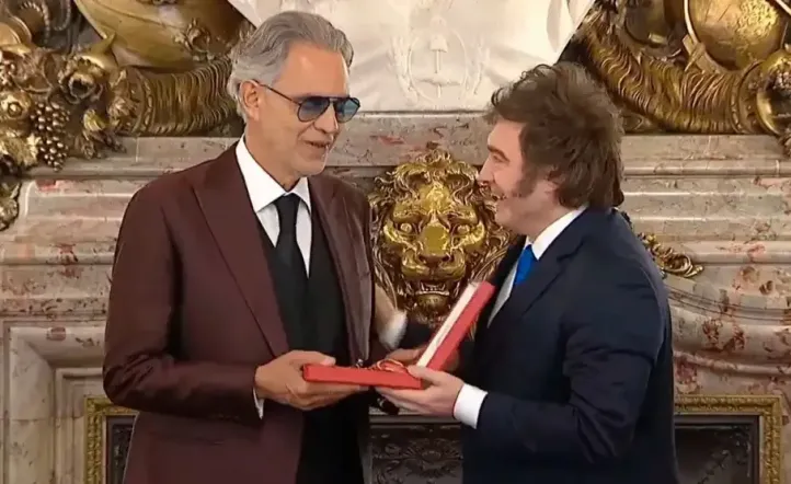 La ceremonia cerró con aplausos y un saludo final entre Milei y Bocelli, en una visita que combinó política, música y un reconocimiento oficial a una de las voces más importantes del mundo.