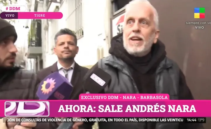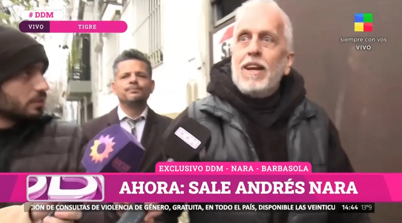 Andrés Nara recibió la excarcelación luego de estar cuatro días detenido en una comisaría de Tigre después de que sus vecinos lo acusaran de haber ejercido violencia de género contra su mujer, Alicia Barbasola.