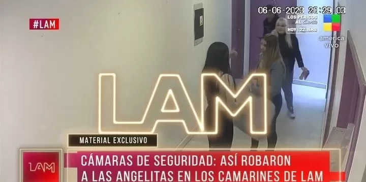 El clip comienza desde la entrada al canal, cuando los tres cruzan los molinetes para ingresar. Luego fueron al sector de los camarines y la productora les indicó dónde se podían cambiar. Transcurridos los minutos, Morena y su amiga, Daiana, entraron al sitio donde Marcela Feudale y Mónica Farro, las damnificadas, tenían sus pertenencias.