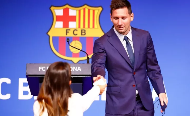 Apenas ingresó al auditorio, donde habló por primera vez públicamente desde que se supo que después de17 años ya no forma parte del club catalán, el jugador comenzó a llorar. En ese momento fue su esposa quien le alcanzó un pañuelo para que pudiera secarse las lágrimas.