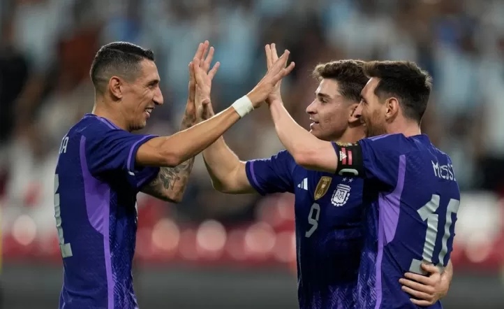 De esta manera, el equipo se quedó con tres hombres abajo, como ensayó varias veces el DT en los entrenamientos. Montiel, Foyth, Pezzella, Lisandro Martínez y Molina se pararon en el fondo. Paredes y De Paul fueron el doble volante central. Correa, Julián y Messi completaron el ataque.