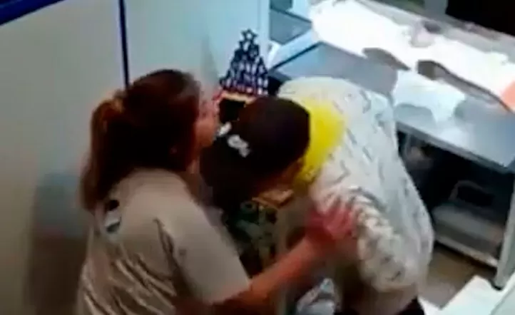 Ya con el dinero en su poder, el ladrón sorprende a su víctima de turno con un inesperado pedido. “Bueno, dame un beso”, le pide a la mujer, lo que podría servir de indicio para determinar que ambos se conocían de antes.