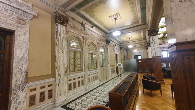 Digno de destacar es también el Salón de las Columnas, donde se pueden observar pinturas y esculturas y un importante vitral sobre el techo.