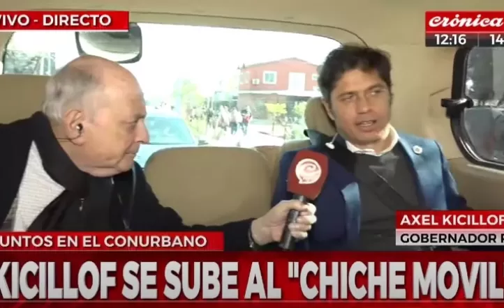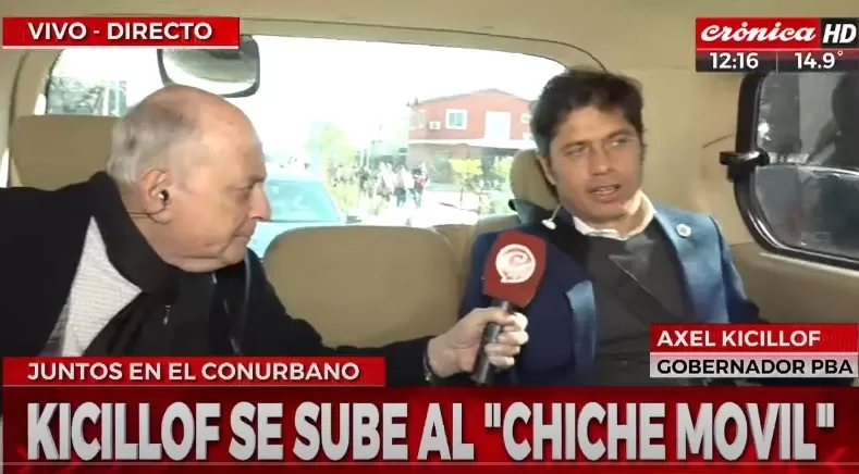 El gobernador bonaerense Axel Kicillof habló de su gestión en la provincia, la inseguridad y la inflación en un mano a mano con Chiche Gelblung, en una recorrida en auto por el conurbano en vivo para Crónica HD.