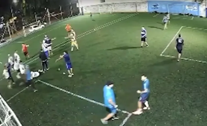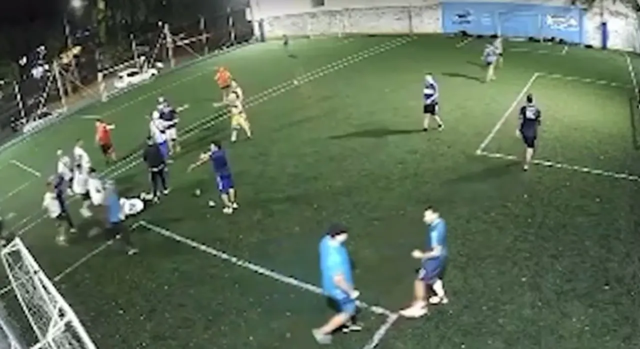 El video de las cámaras de seguridad de las canchas demuestra cómo los barras irrumpen en el lugar, presuntamente por descubrir que uno de los integrantes del partido jugaba con un pantalón del club uruguayo.