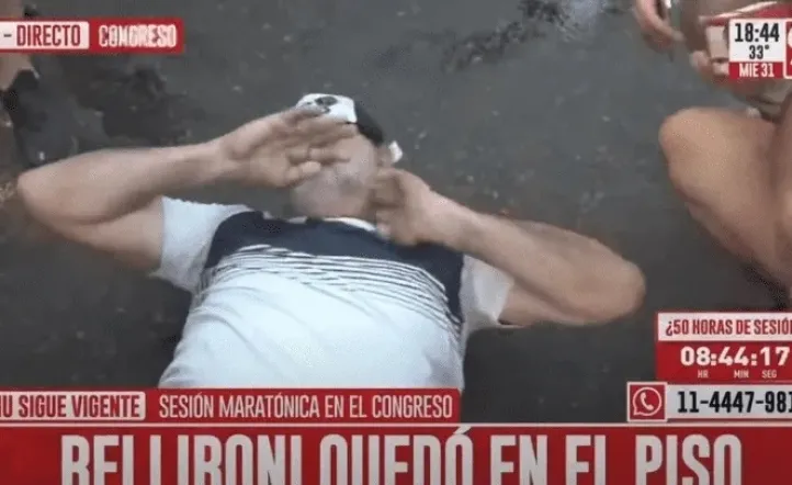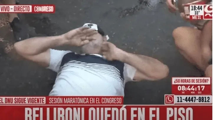 Crónica HD registró el momento en que se encontraba tirado en el piso Belliboni, quien fue asistido por un puñado de manifestantes hasta que se pudo incorporar por sus propios medios.