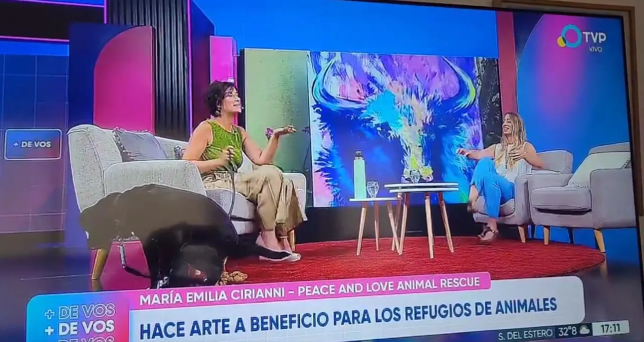 La bizarra secuencia fue compartida por el periodista Franco Torchia en su cuenta de X: “En la Televisión Pública ya hay al aire un programa sobre perros llamado "+De vos" que -entre otros contenidos alusivos- promueve la adopción de mascotas. Recién una perra perrar "bautizó" sobre la alfombra al ciclo”.