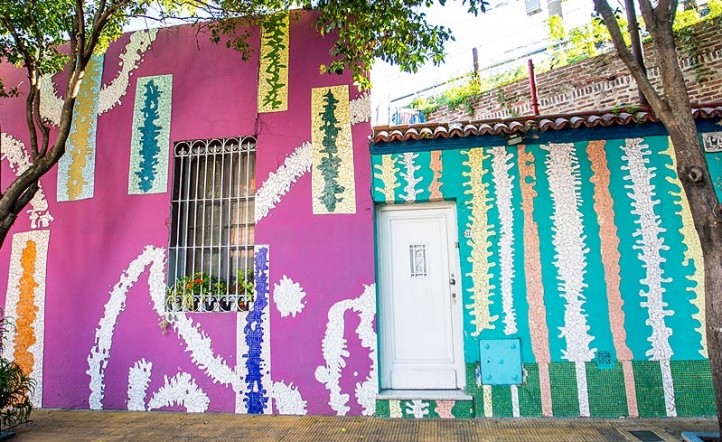 En Barracas, desde Lanín 1 al 200 se luce la intervención inconfundible del artista plástico y vecino del pasaje Marino Santa María que le aportó color y venecitas a los frentes de las casas en un trabajo formidable. No vas a necesitar aplicar ningún filtro a estas fotos.