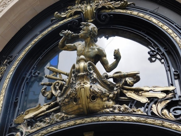 Si hay una portón imponente, ese es el del Centro Naval ubicado en la intersección de Florida y Córdoba, que exhibe bronces artísticos con simbólicas medusas que representan metáforas y mitos. El bronce proviene de la fundición de los viejos cañones de guerra que estaban montados en los barcos que defendieron la Independencia nacional. Su capitel representa el mascarón de proa de un buque antiguo y allí asoma Tritón, hijo y mensajero de Neptuno, que se asoma tocando una trompeta de concha de caracol.