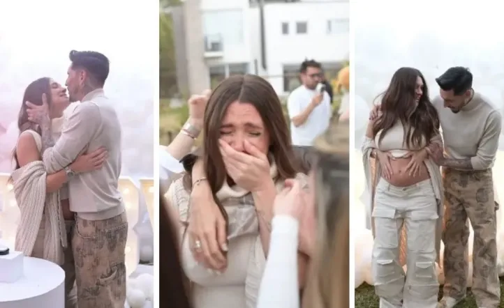 Situados en un jardín amplío que se decoró para la ocasión con elementos de color blanco, la exparticipante de Bake Off Famosos se mostró exultante ante tamaña noticia. Por su parte, Sosa, jugador de Estudiantes de La Plata, mantuvo un perfil más bajo, aunque se mostró abrazado a su pareja ante tamaña noticia que emocionó a todos los presentes.