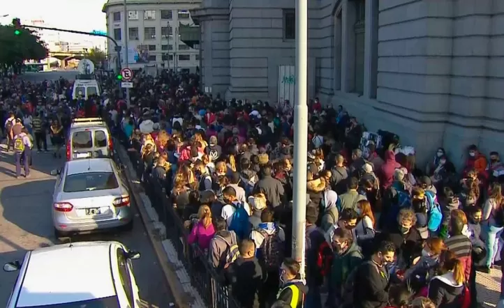 Cientos de pasajeros se agolparon en la puerta y golpean las rejas para que las abran. Esta situación se da cerca de la hora pico, donde la gente vuelve a sus casas después de un día de trabajo