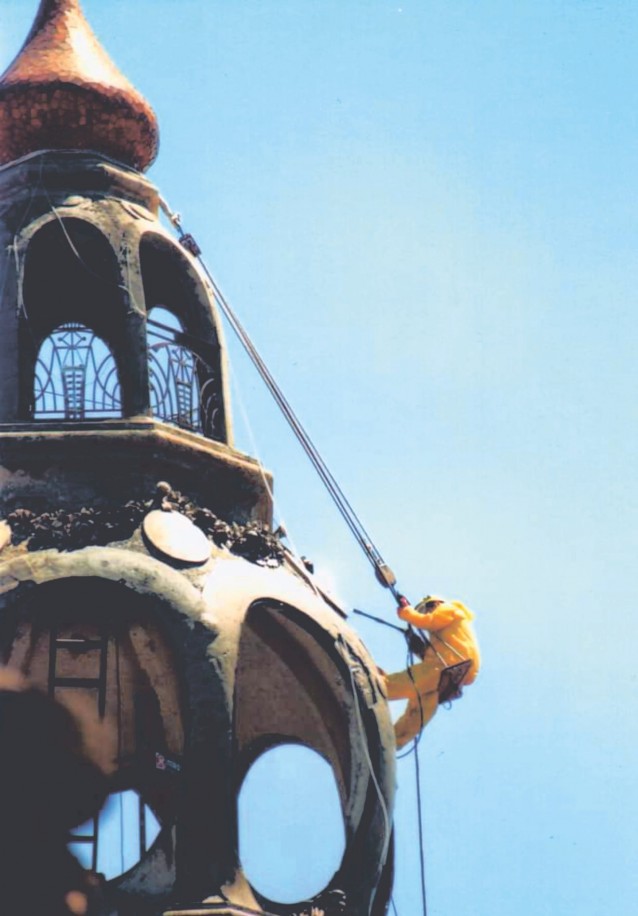 También se adicionaron figuras de guerreros medievales similares a las que se pueden ver en la fachada de la Sagrada Familia y en la Terraza de la casa Mila o La Pedrera.
