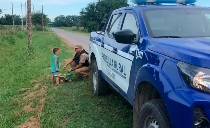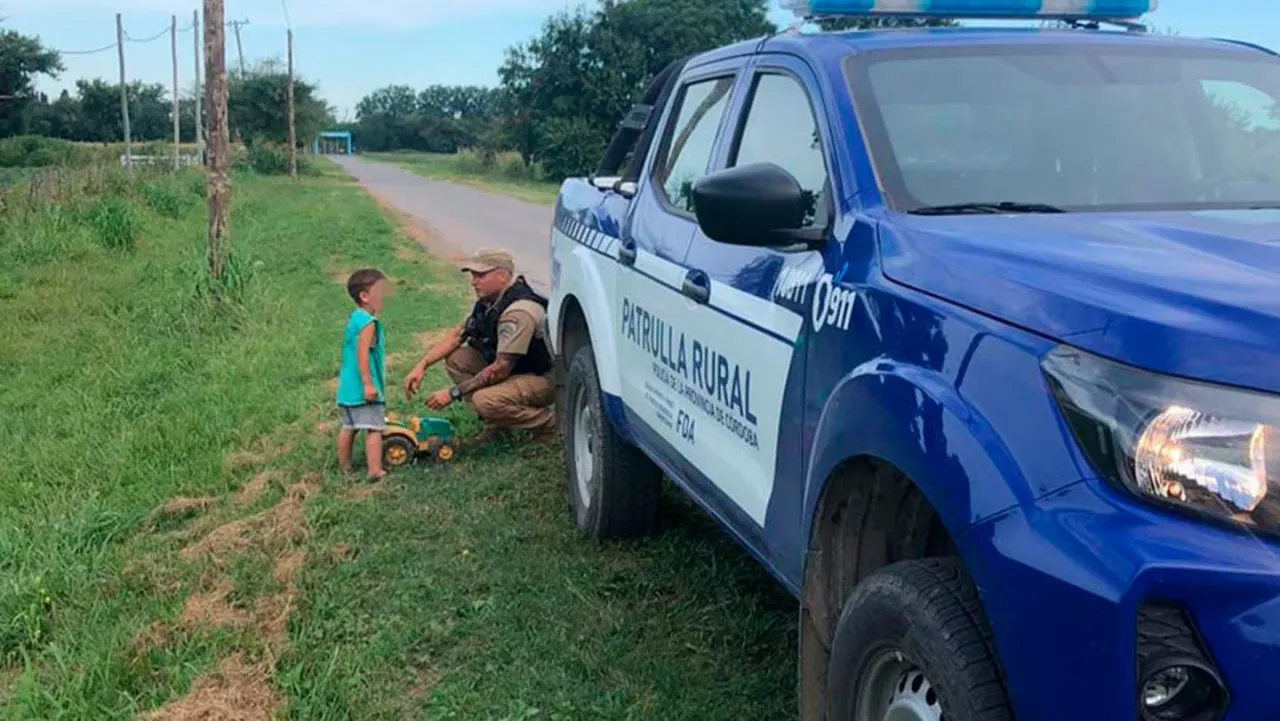Un niño pequeño de dos años solo y al costado de una acequia en la calle. Está fue la escena que alertó a miembros de la Policía de Córdoba en la tarde del viernes. Personal de Patrulla Rural estaba realizando su recorrido de rutina por Camino a 60 Cuadras cuando se toparon con el menor.