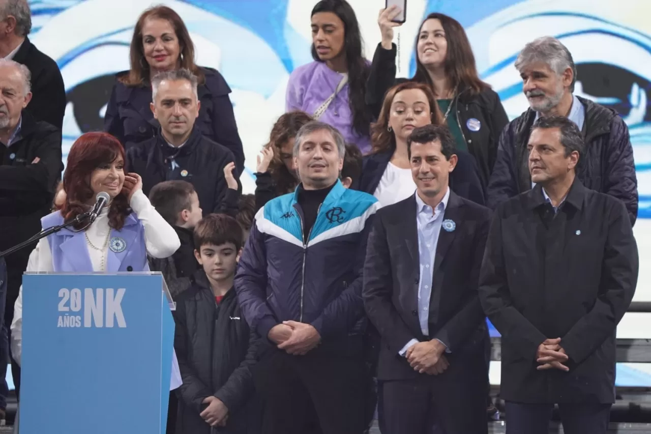 La vicepresidenta llegó al escenario de Plaza de Mayo y fue recibida con el cantico: "Cristina Presidenta, Cristina Presidenta". A su lado estaban Máximo Kirchner y Axel Kicillof. “Quiero encontrarme con ustedes de nuevo en esta plaza como hace 20 años”, comenzó la referente del kirchnerismo. "Hace 20 años que llegábamos con él a esta plaza”, recordó.