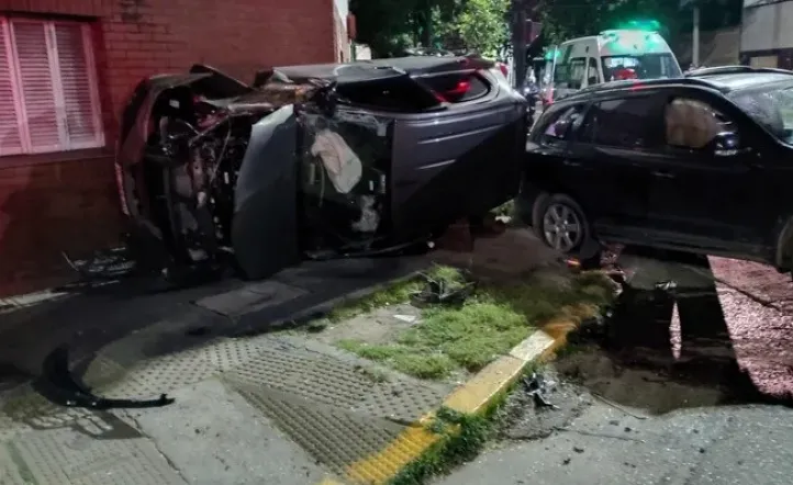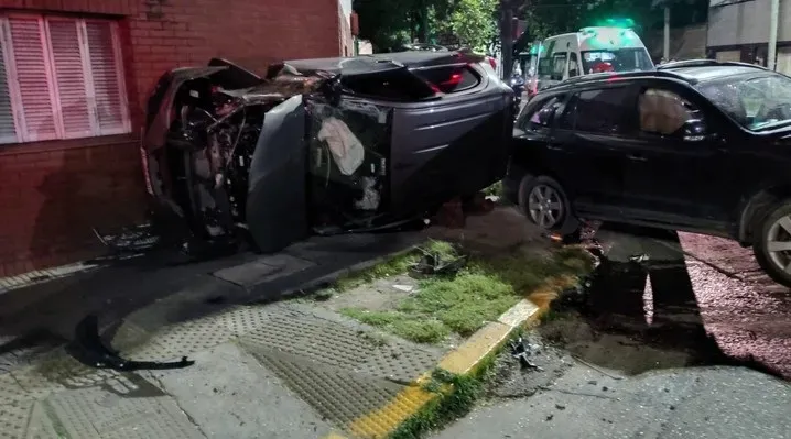 Según fuentes policiales, el choque se produjo alrededor de las 3.45, entre un Hyundai Santa Fe y un Toyota Etios, que fue el que causó la colisión, arrolló a la familia y volcó sobre la vereda.