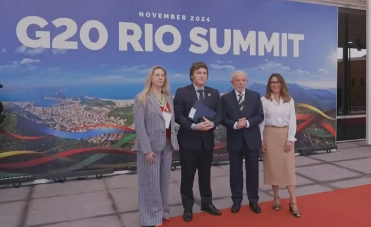 En el inicio de la cumbre celebrada en Río de Janeiro, el presidente argentino y su par brasileño, Lula Da Silva, compartieron un frío saludo. Ambos aguardaron distancia y solo se estrecharon la mano. Tras ello, posaron para la foto oficial junto a la secretaria general de la Presidencia, Karina Milei, y la esposa de Lula, Rosângela Da Silva.
