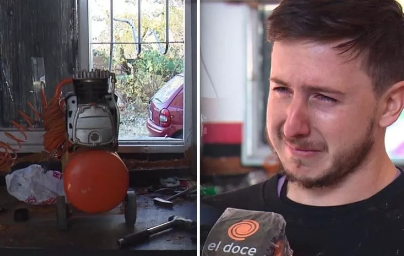 “Tenía el taller hace 20 días. Me llevaron todo, las herramientas, todo lo que uso para trabajar. No me dejaron nada. Cerramos a las 18 y abrimos a las 9. Cuando entramos di con todo tirado”, lamentó en Noticiero Doce.