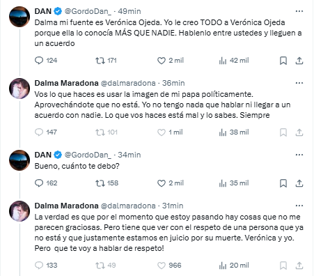 El cruce se da mientras se está llevando a cabo el juicio por la muerte de Diego Maradona, que se encuentra atravesado por la polémica del documental "Justicia Divina" y actualmente la familia del futbolista espera que se defina si se declarará nulo el proceso legal tras la recusación de la jueza Julieta Makintach.