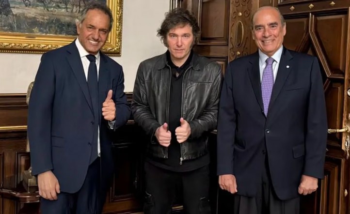 “Estoy muy agradecido con el presidente y con Francos de poder aportar mi experiencia para lo que mejor sé hacer con mis relaciones internacionales: crear trabajo, traer inversiones, acompañar la nueva tendencia de la baja de la inflación. ¡Una baja en la tasa de interés al 40% anual! Si esto sigue así, a Milei le van a tener que dar el premio Nobel de Economía. Lo digo con toda claridad”, postuló Scioli en entrevista con LN+ y argumentó: “Porque muchas veces los premios Nobel de economía son a la teoría, en este caso estamos viendo una transformación de Argentina que, en cinco meses, se pone en la senda del superávit financiero, de un superávit comercial”.