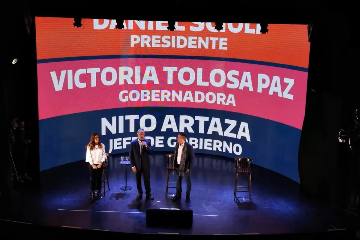 Esta tarde, Daniel Scioli anunció su candidatura a presidente. También confirmó que Victoria Tolosa Paz será su candidata a gobernadora de la Provincia de Buenos Aires y a Nito Artaza para jefe de Gobierno de la Ciudad de Buenos Aires. Los anuncios los realizó en el teatro ND.
