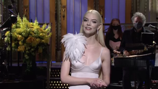 Taylor-Joy estuvo acompañada por el rapero Lil Nas X para cerrar la temporada número 46 del programa. En el monólogo inicial contó que era la primera vez en meses que SNL contaba con una audiencia en vivo, “completamente vacunada”. Además compartió que nació en Miami, lo cual tuvo una reacción importante de la audiencia, y que se crió entre Argentina y Londres.