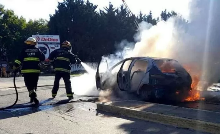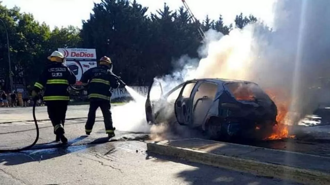 El hombre se salvó de milagro y sufrió lesiones en rostro y brazos. El asalto se produjo alrededor de las 2:00 en Roca y San Martín, en la localidad mendocina de Las Heras. Los bomberos informaron que el Peugeot 207 se destruyó casi por completo.
