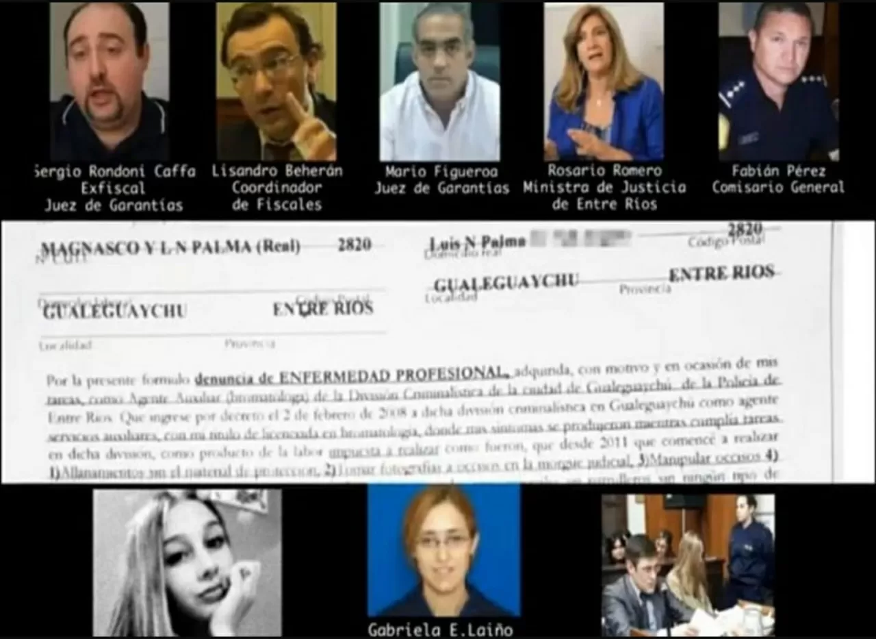 El dato más relevante de la acción judicial de Laiño contra la Policía y el estado de Entre Ríos bajo el expediente N° 49233/21 caratulado “Laiño Gabriela Estefanía C/Instituto Autárquico Provincial del Seguro de Entre Ríos y/otros que se hizo público, bajo el patrocinio legal de los Dres. Carlos Federico Aloy e Ignacio Perez Nuñez, es que sabiendo que ella no tenía conocimiento alguno sobre las pericias a realizar que le pedían sus superiores el ex fiscal Sergio Rondoni Caffa, el Coordinador de Fiscales Lisandro Beherán y el Comisario General Fabián Pérez entre otros, siendo obligada igualmente a realizarlas bajo la frase: “Es una orden urgente”.