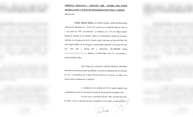 Adrián Alfredo Molina es un hombre de 44 años que radicó una denuncia en la Ciudad de Buenos Aires contra Alejandro Wiebe, más conocido popularmente como Marley. Según pudo saber Noticias Argentinas, el damnificado vive en Miami pero viajó a la Argentina para realizar la presentación judicial.