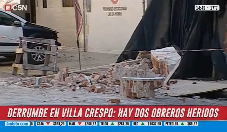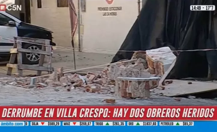 Según informó el canal C5N, un grupo de operarios se encontraba en la tarea de demoler el edificio ubicado en Humboldt al 600 cuando de repente unos trozos de mampostería se estrellaron contra la vereda. En el proceso una parte impactó contra dos empleados del taller mecánico ubicado justo al lado del sitio en obra.