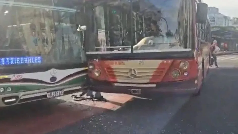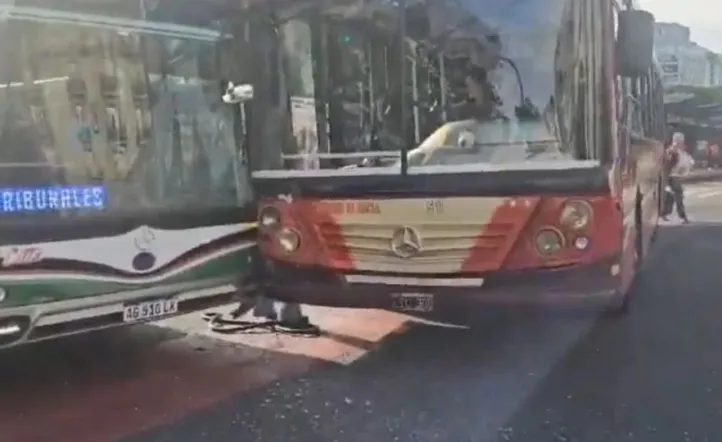 Dos colectivos de las líneas 59 (interno 57) y 67 (interno 51) chocaron esta mañana en la intersección de las avenidas 9 de julio y Santa Fe, pleno centro de la Ciudad de Buenos Aires.
