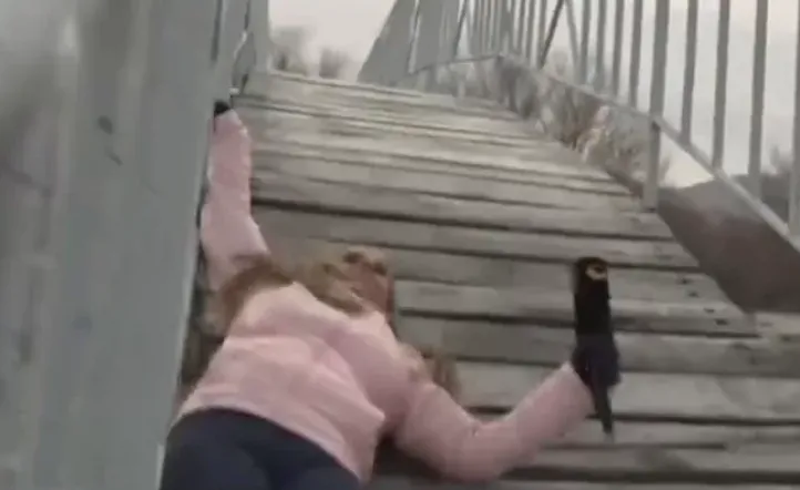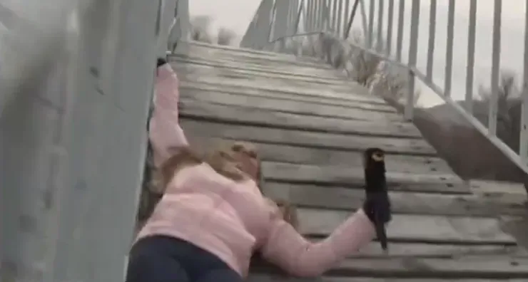 Paula Bernini fue protagonista de un increíble blooper durante una cobertura en la ciudad neuquina de Junín de Los Andes: se cayó cuando intentaba cruzar el puente Banana que cruza el río Chimehuin.