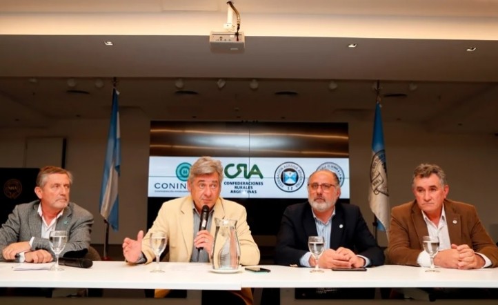 En la previa, este jueves, el presidente de la Federación Agraria Argentina (FAA), Carlos Achetoni, su par de Coninagro, Elbio Laucirica, el titular de la Sociedad Rural Argentina (SRA), Nicolás Pino, y el Confederaciones Rurales Argentinas (CRA), Jorge Chemes, se reunieron primero entre ellos y luego dialogaron con la prensa en la vereda de la sede porteña de FAA.