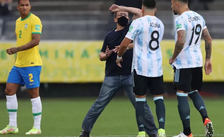 El encuentro Brasil-Argentina quedó suspendido ayer a los 6 minutos, cuando funcionarios de la autoridad sanitaria brasileña entraron al campo ante la presunta comisión de una infracción del protocolo sanitario por parte de cuatro jugadores argentinos que juegan en la liga inglesa y que supuestamente deberían haber guardado cuarentena.