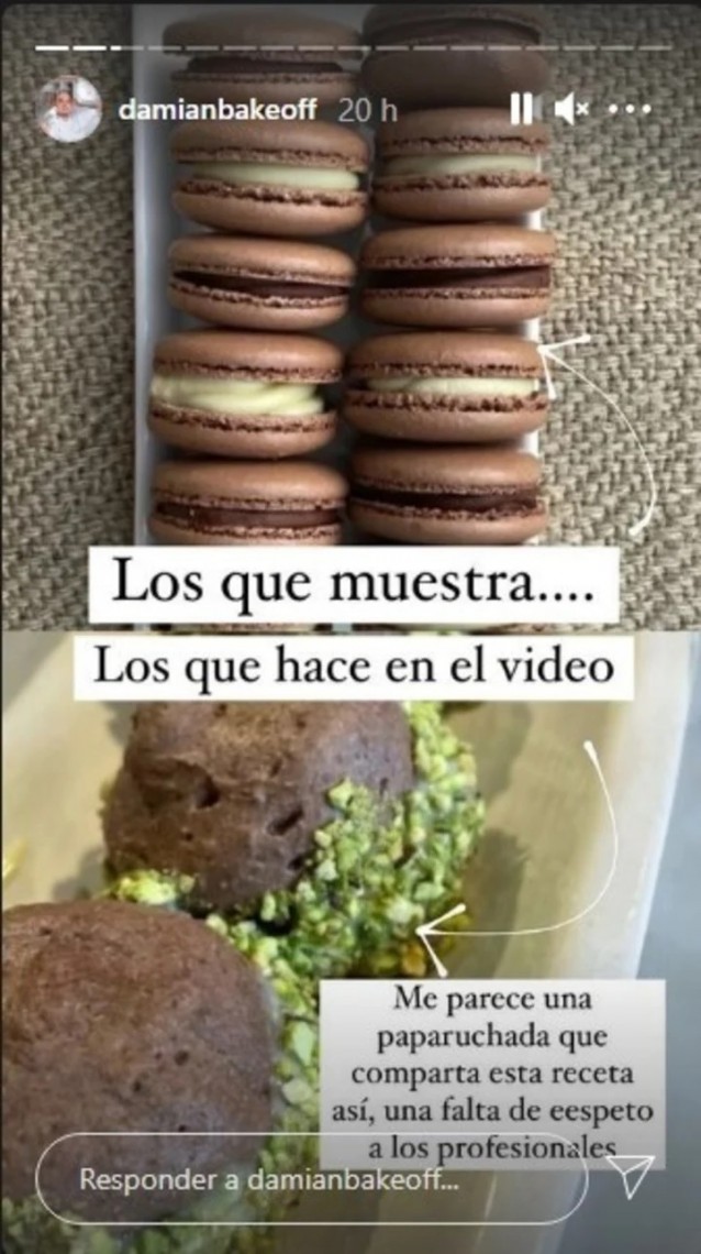 "Los que muestra... Los que hace en el video", comparó el pastelero, visiblemente enojado, sobre otra imagen que compartió en sus historias de las galletas elaboradas por su colega.